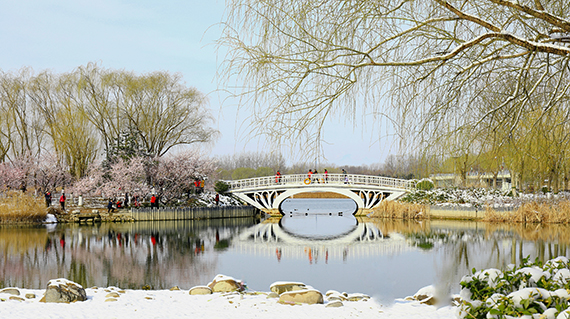 桃花映春雪作者:于夏宁