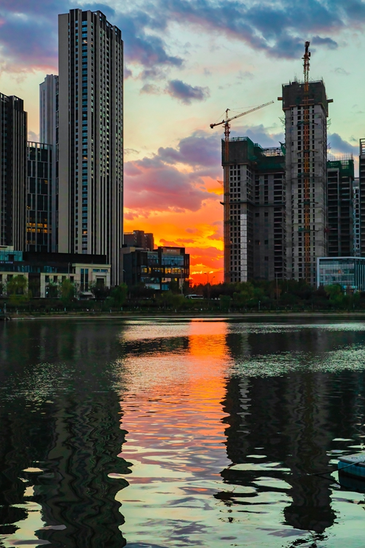 霞光映照新丽泽作者:王绣