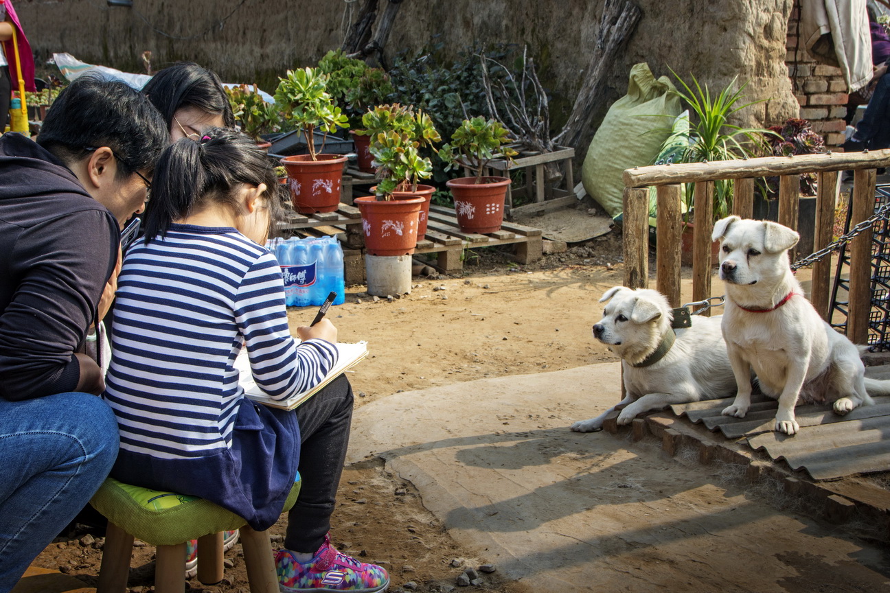多肉棚里写生的小朋友们 (组照6张)作者:寇尚民