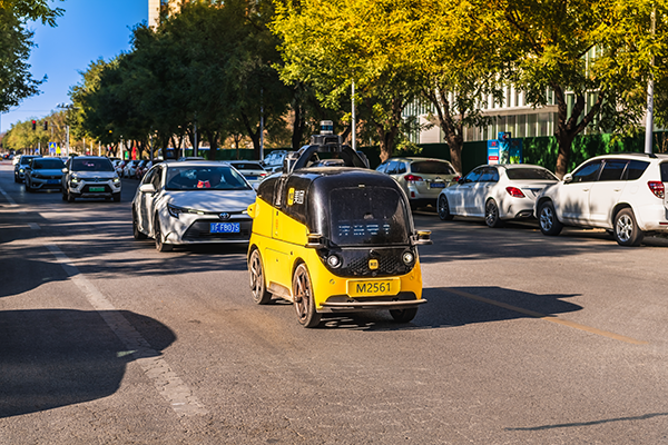 穿梭在繁华街道上的无人驾驶车作者:林学会