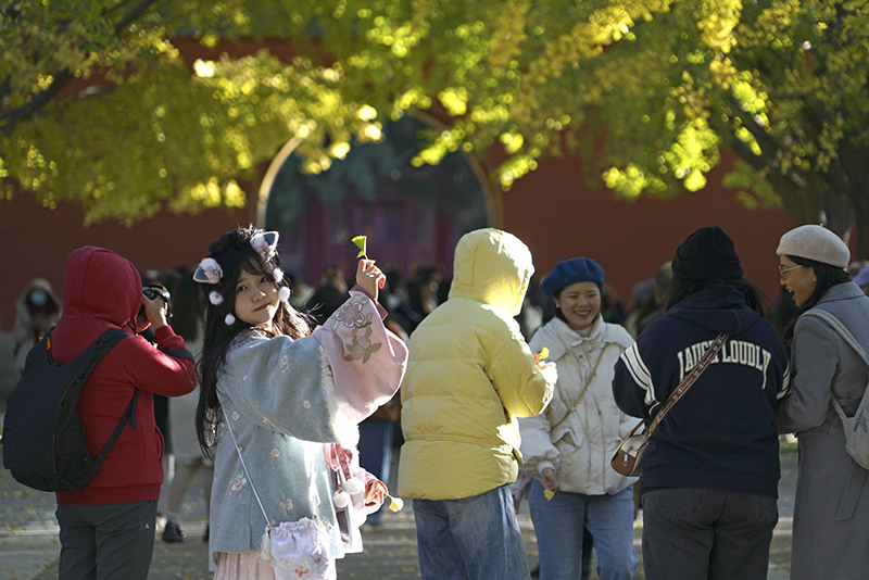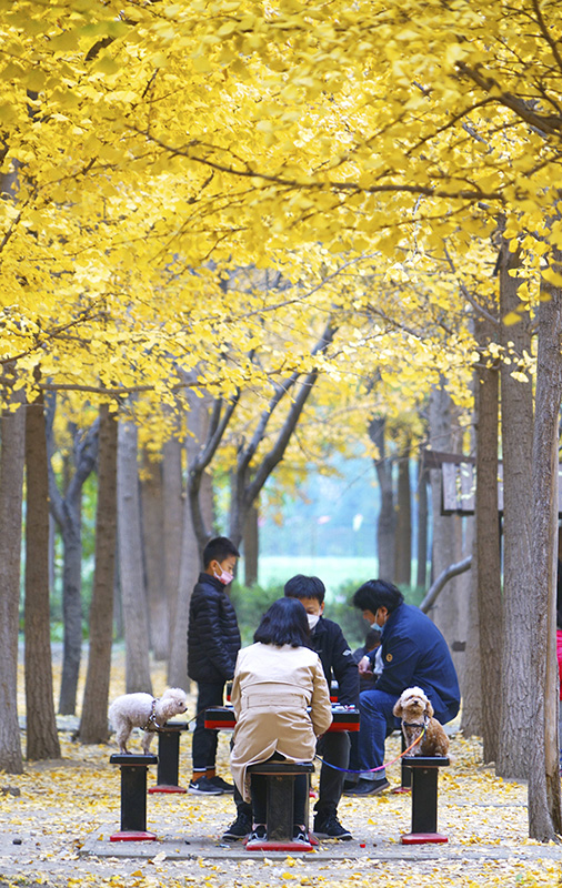 中山公园秋色吸引游客作者:石艺媛