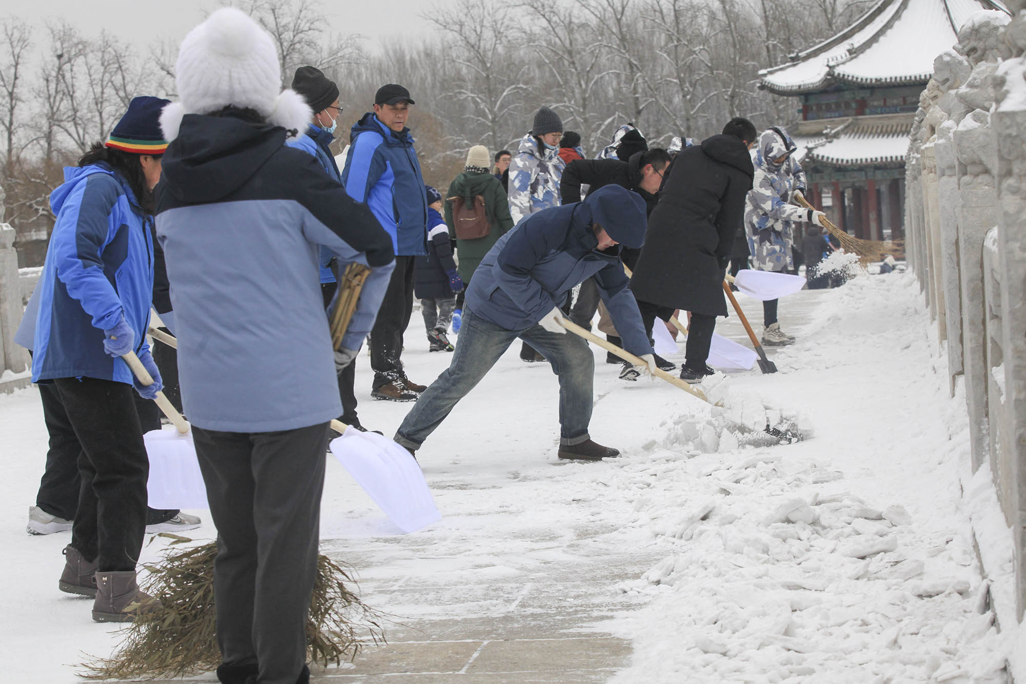 合力推雪作者:张东风