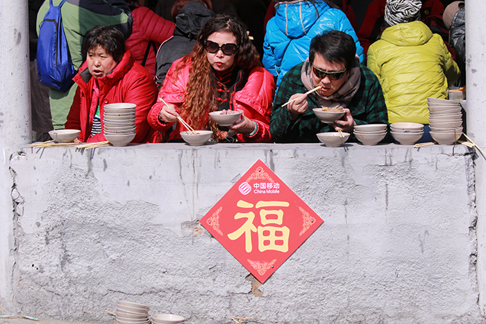 游客在山村吃起敛巧饭作者:陈刚