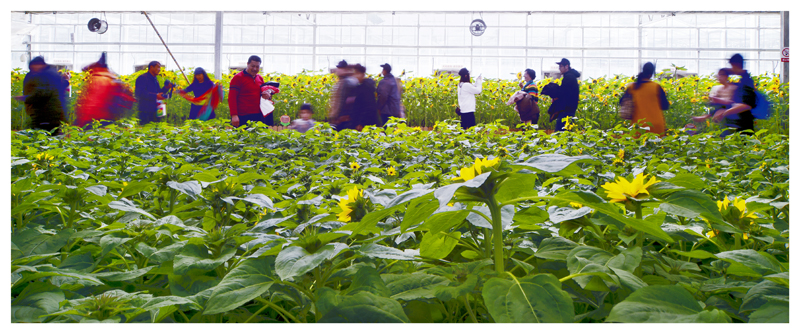 人们流连花海中作者:裴桐年