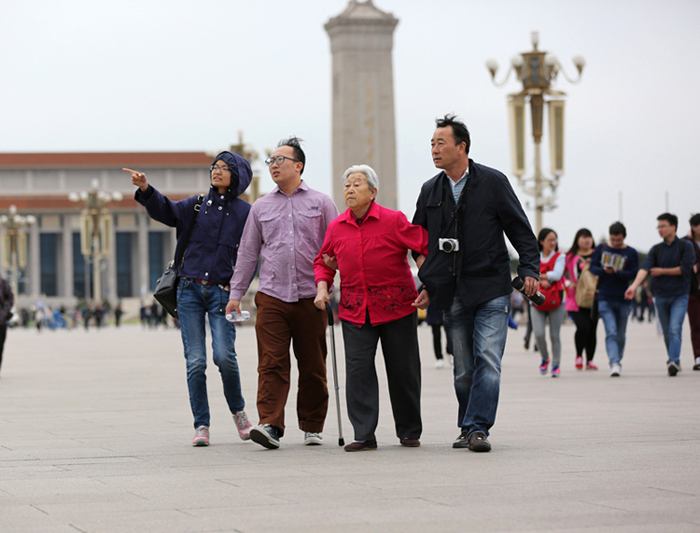 搀扶妈妈游广场作者:王彦高