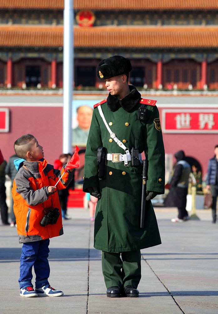 与武警叔叔合个影作者:赵建洪