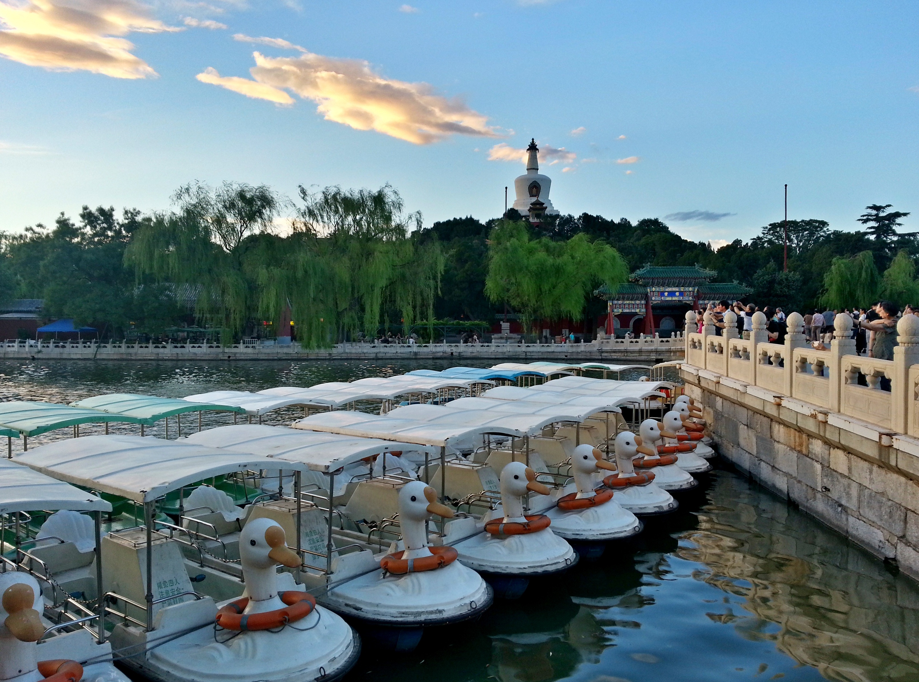 晚霞、鸭船、白塔、人们作者:霍玉平