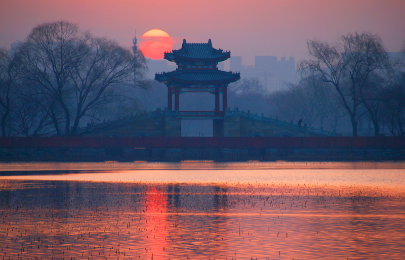 柳桥日出作者:田福广
