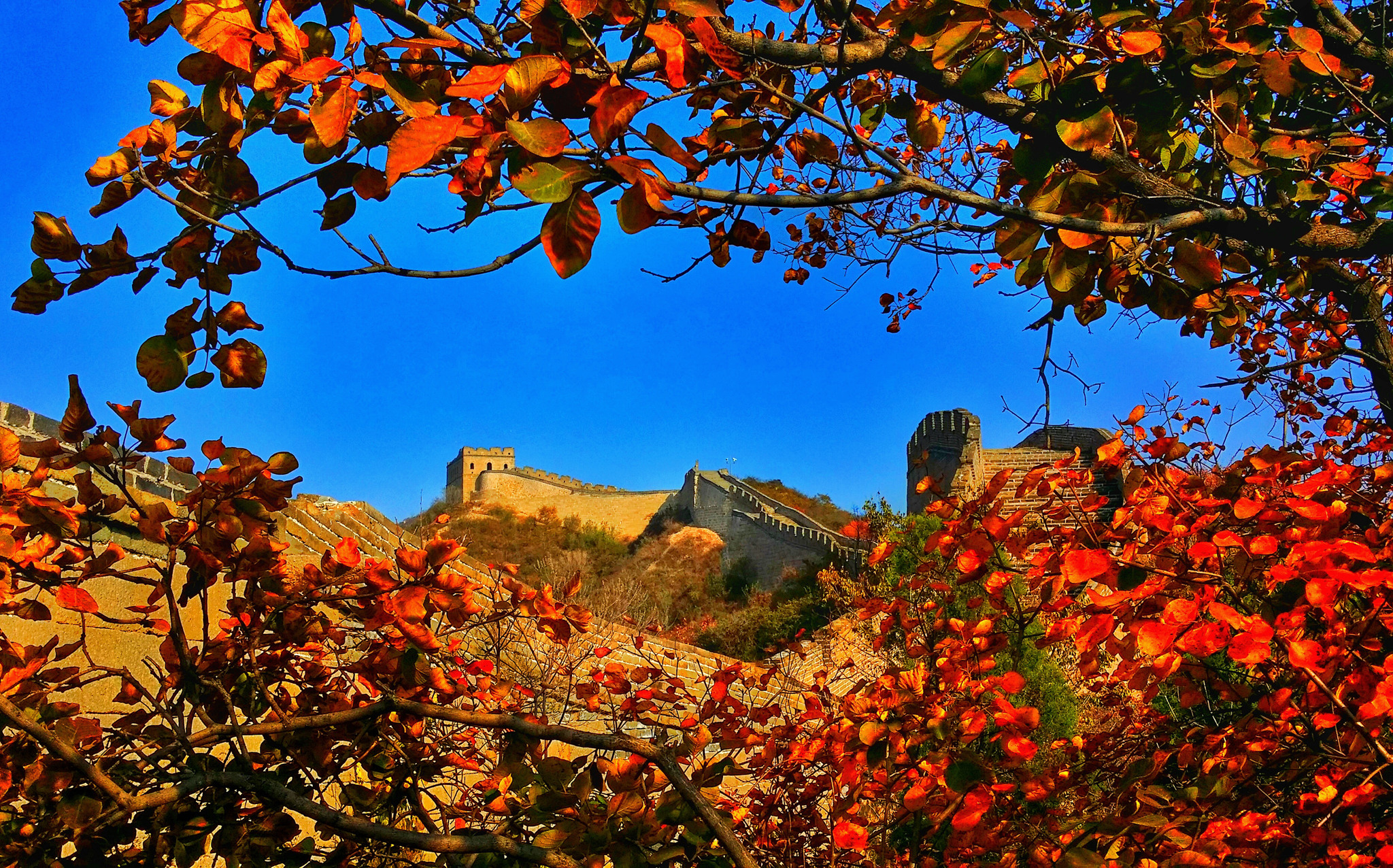 红叶长城相辉映作者:张妙茵