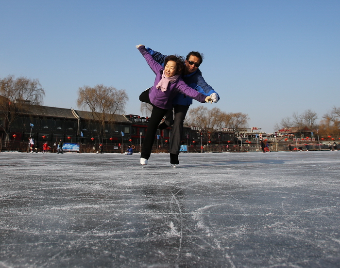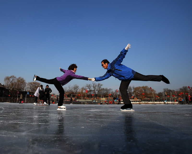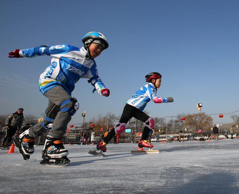 《模仿冰上激情岁月动作 冬乐图中人越出画卷来》作者:杨建国