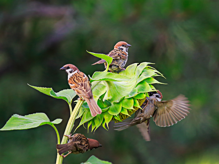 麻雀恋葵花作者:牛树盈