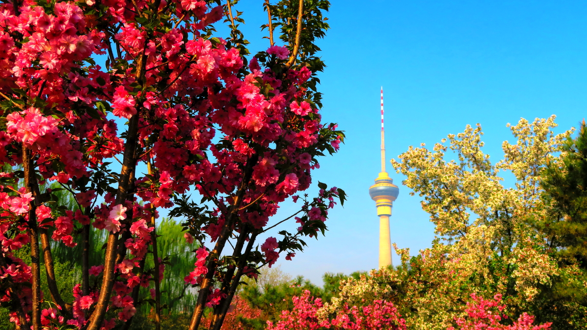 繁花丛中的央视塔作者:田福广