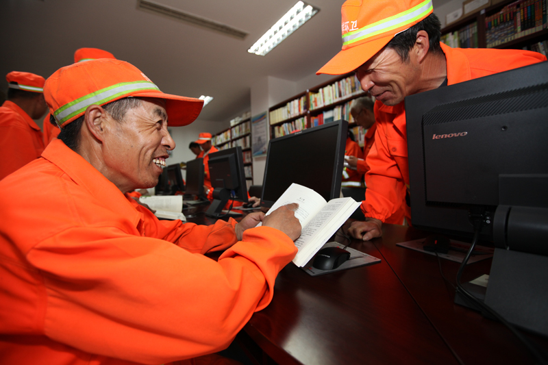 环卫工人走进社区图书馆作者:樊功厚
