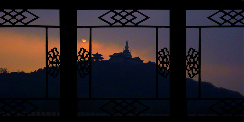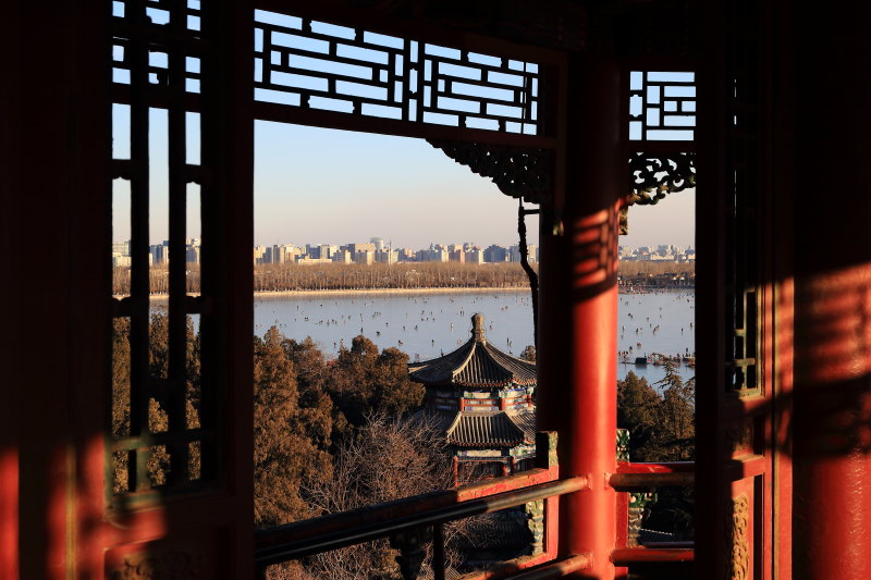 花窗外的玉泉山作者:蔡秀林