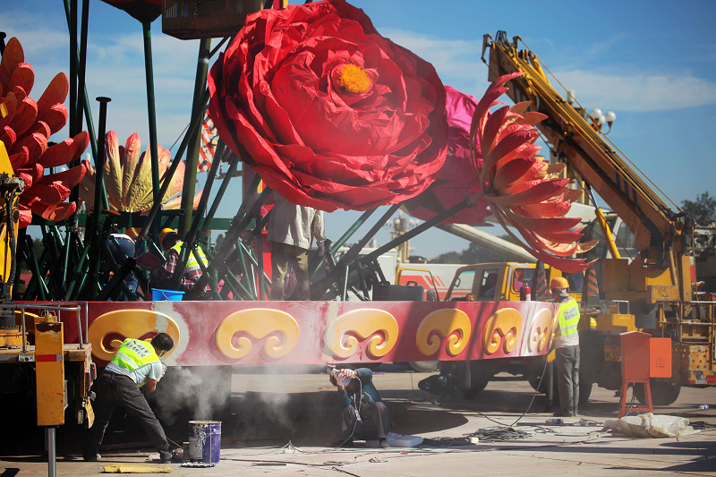 国庆花坛第一花【国庆花坛布置进行时】作者:丁帮学