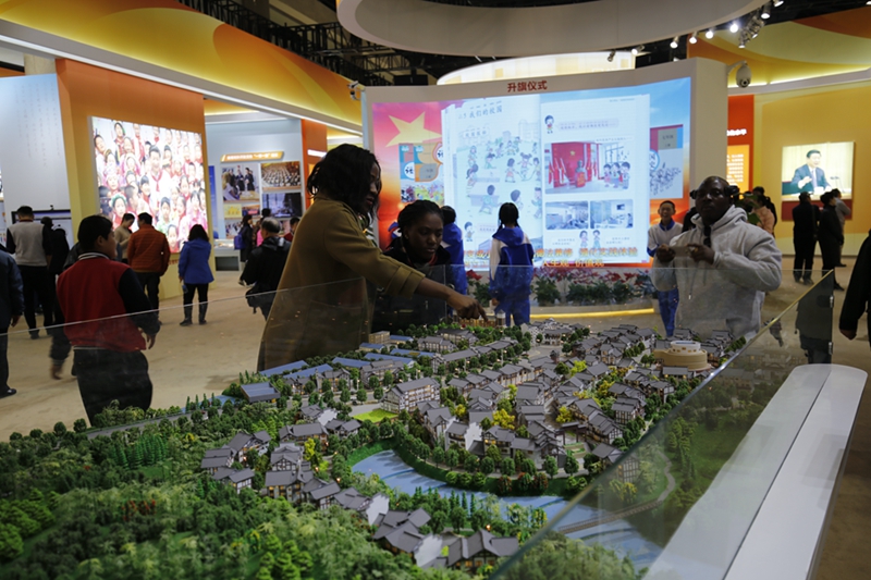 外国友人参观砥砺奋进的五年作者:王子雍