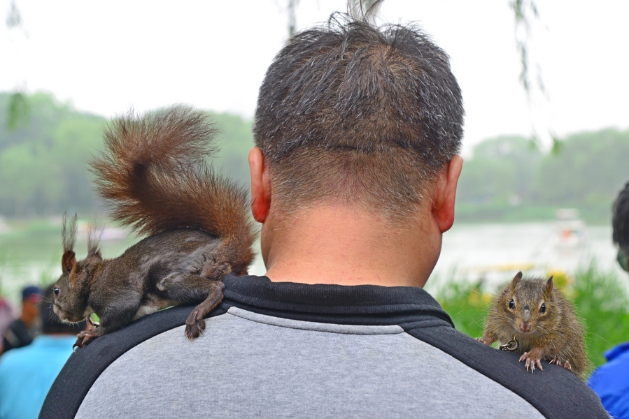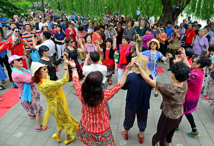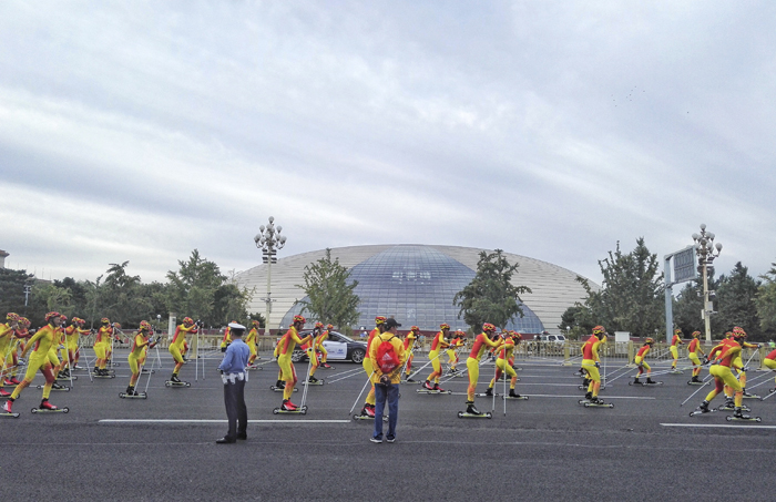 《越野滑雪夏季轮滑队经过国家大剧院》作者:刘宏声