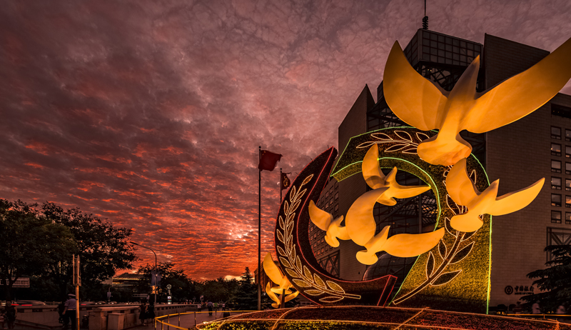 蓝天白云下的北京展览馆作者:傅玮