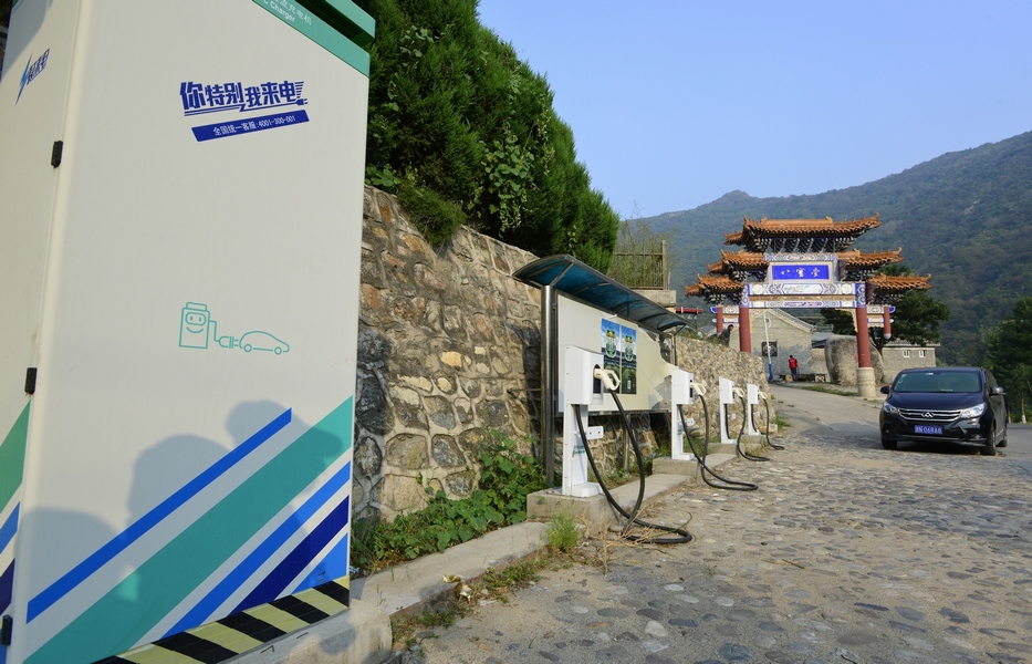村口前的绿色能源充电桩作者:刘惠平