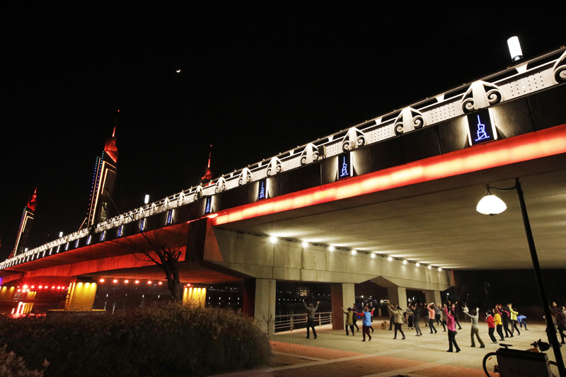 “副中心”的夜晚l练操忙作者:凌福平