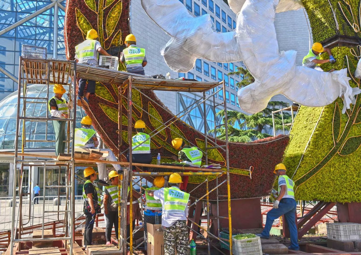 大花篮前合个影作者:王新