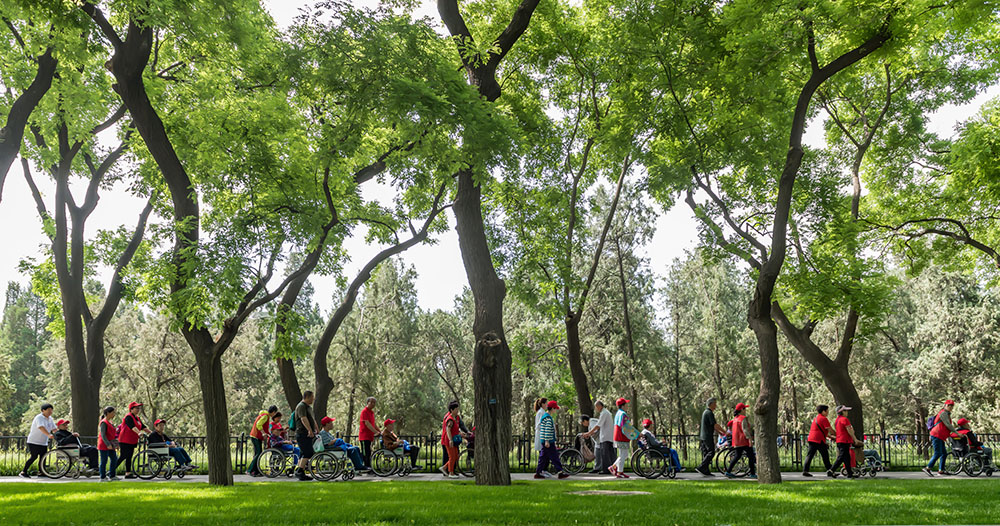 天桥养老院的志愿者带老人们春游赏花作者:刘金慧