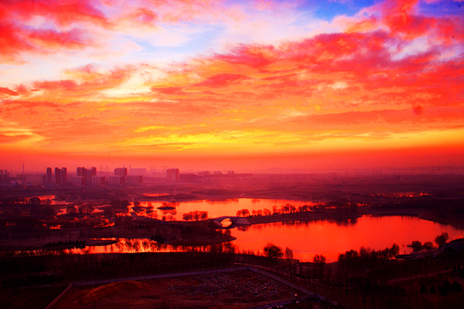 滨河朝霞作者:程波