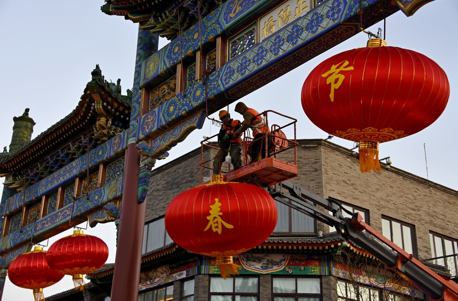 挂灯笼迎新春作者:霍玉平