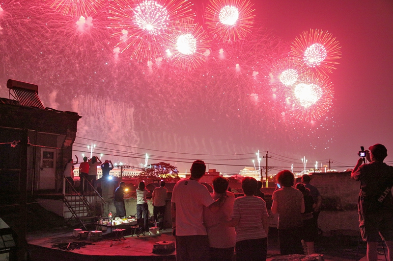 胡同大妈看阅兵作者:李东丽