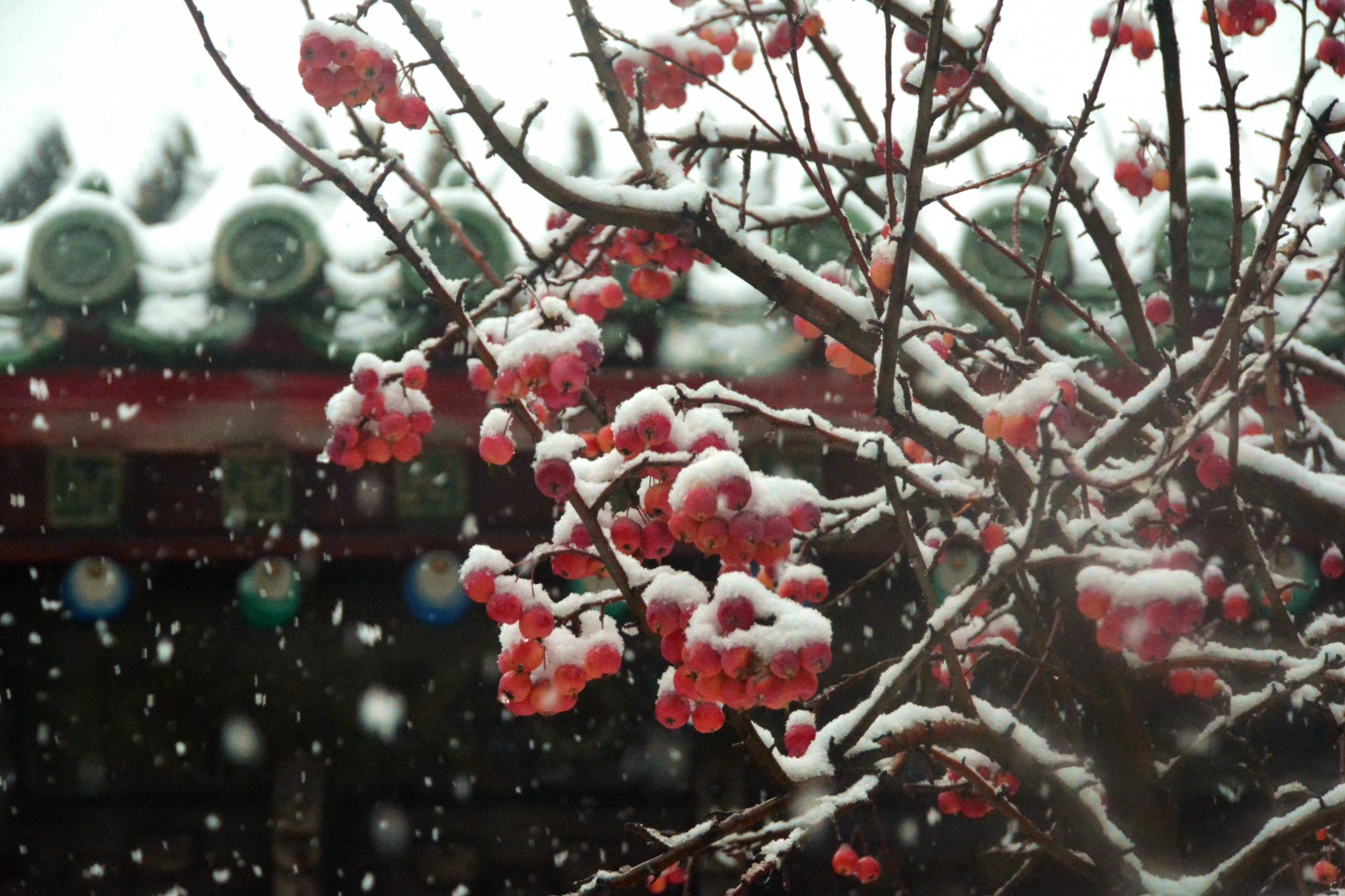 《海棠喜迎漫天雪》作者:杨建国