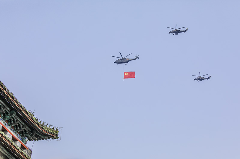 《战鹰划过崇文门箭楼》. ( 国庆70周年预演)注:“划”规划,竖刀表示有力量“亮剑”。作者:刘忠