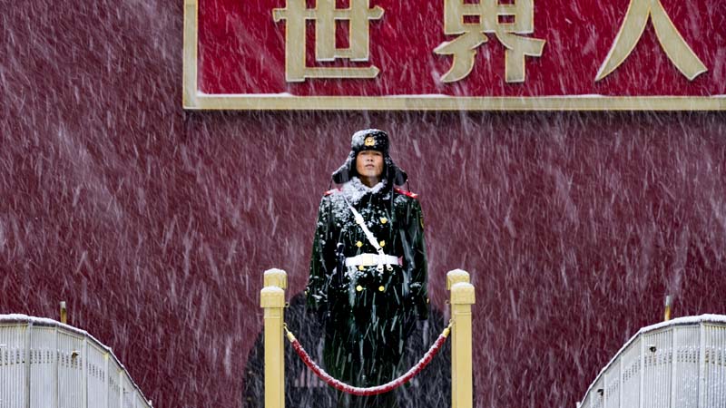 正在雪中换岗的天安门国旗卫士作者:张建荣