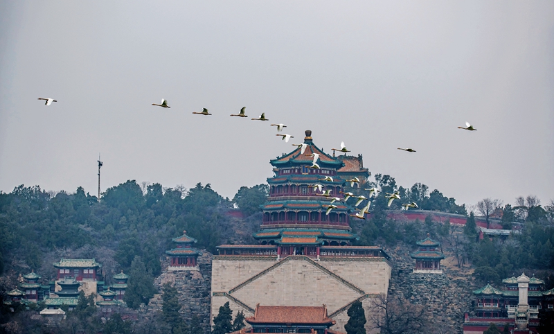 《春归天鹅嬉颐和》作者:徐燕荣