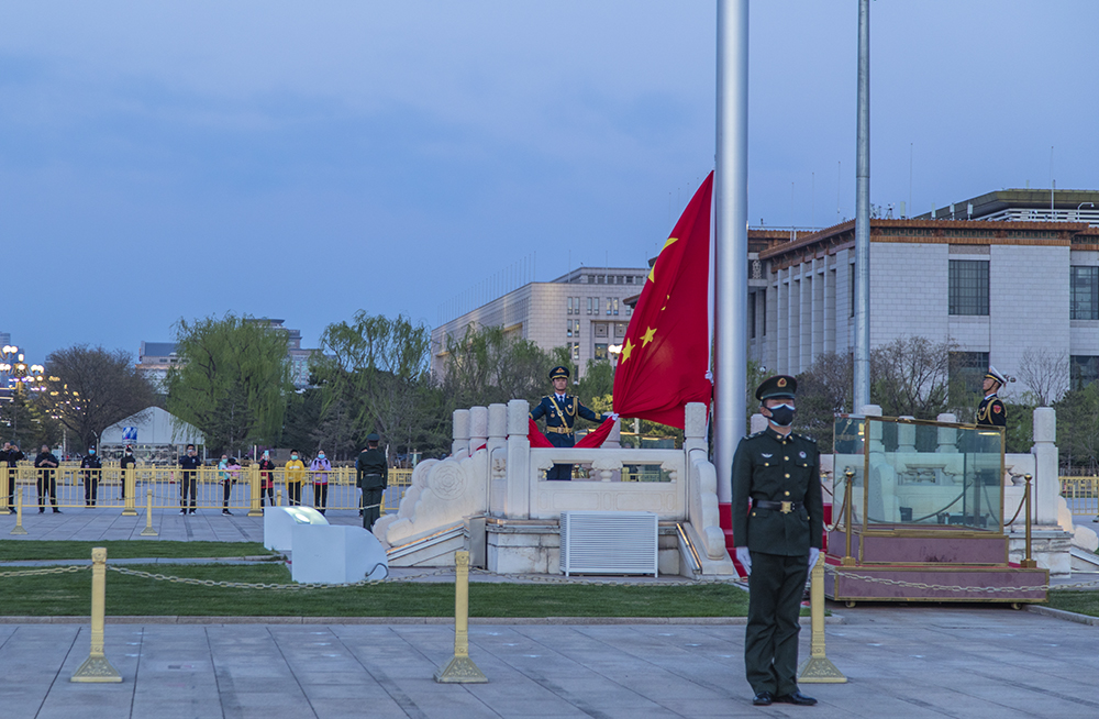 疫情期间广场降旗作者:王秀敏