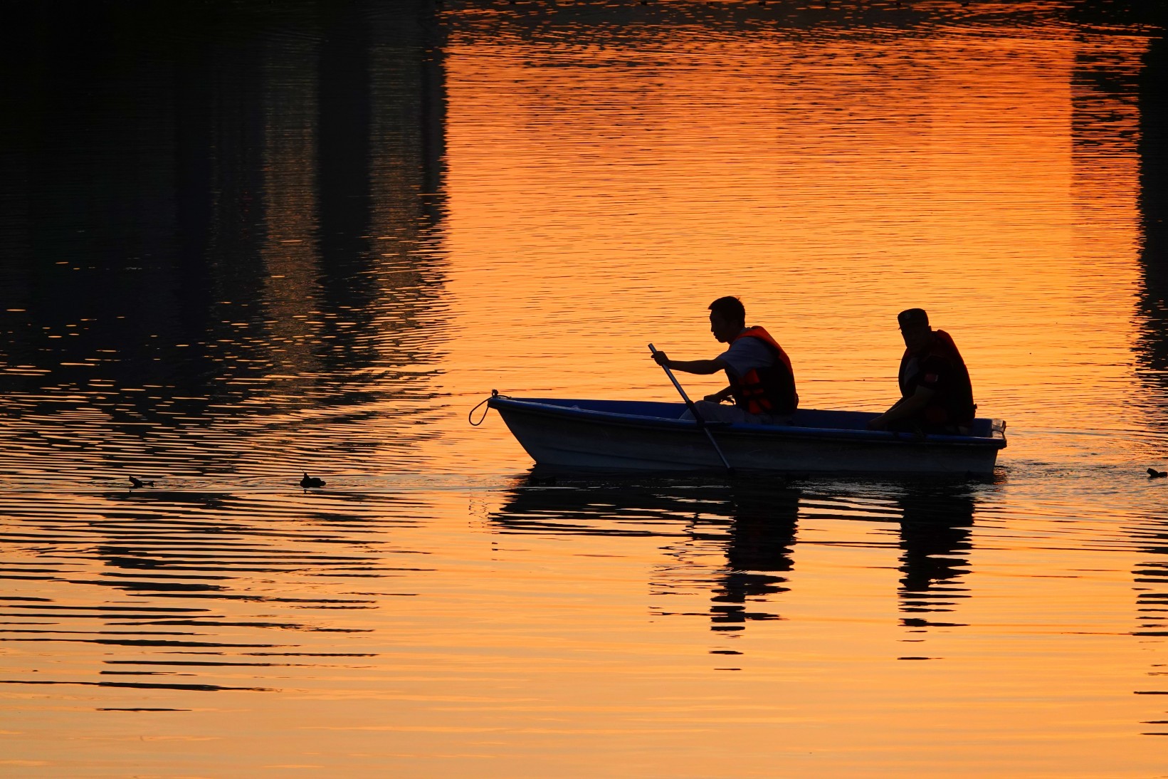 《夕阳下的护河人》作者:杨建国