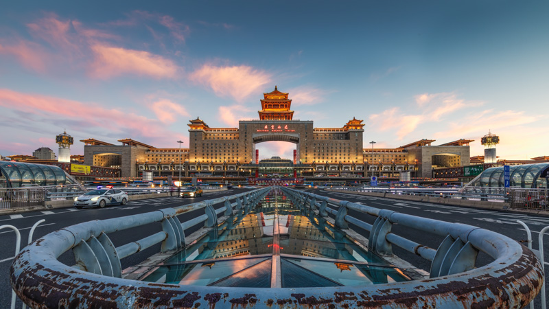 红霞夜景西客站作者:吴鲁萍