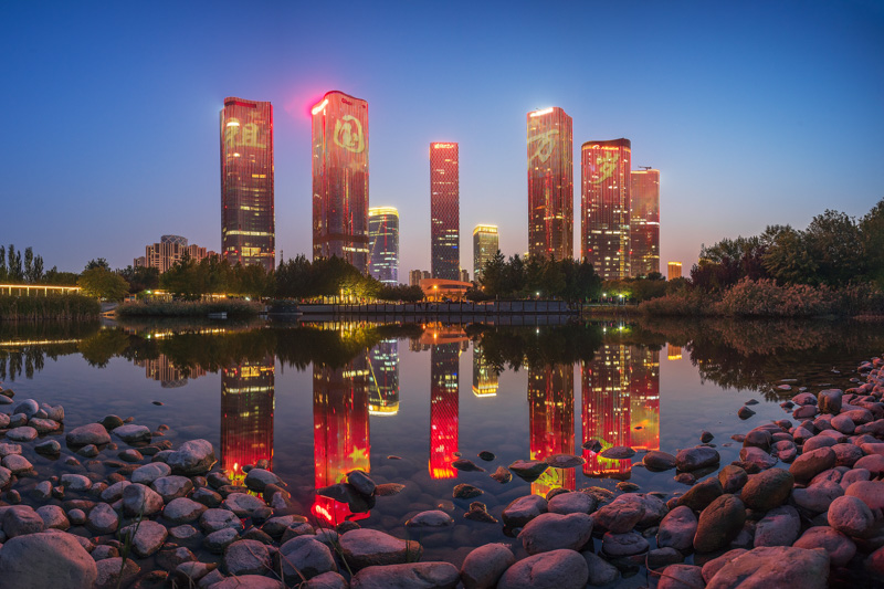 夜色中的欢乐谷与中国尊作者:吴鲁萍