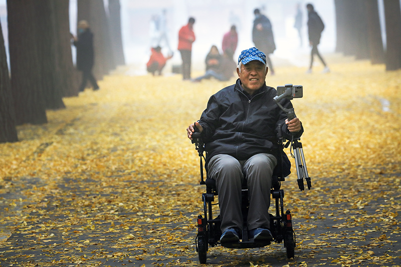 坐着轮椅来赏秋作者:李志伟