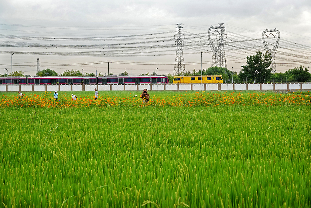 行进的施工人员作者:张连营