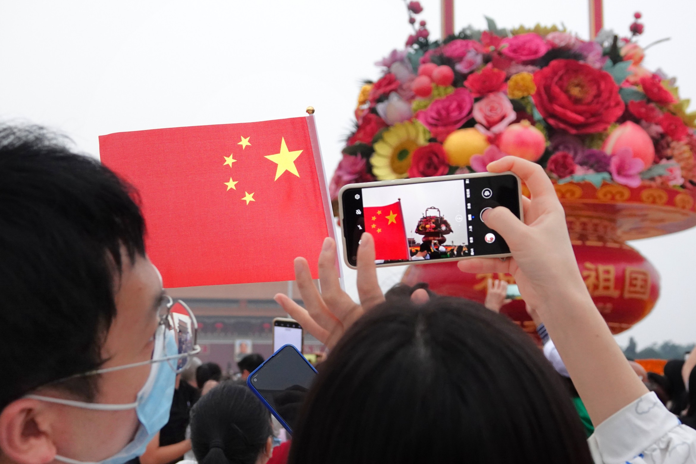 《留影祝福祖国大花篮》作者:杨建国