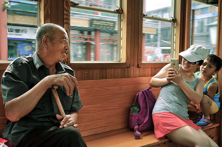 优秀奖 《铛铛车里逛前门》 卢和生 摄