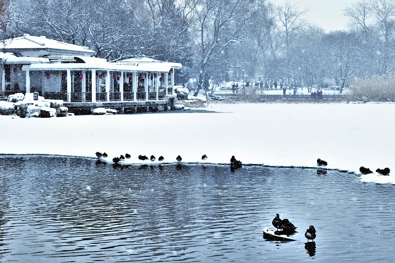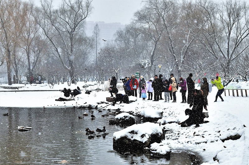 《瑞雪迎春》组照 作者:徐文辉 拍摄地点:北京玉渊潭公园。