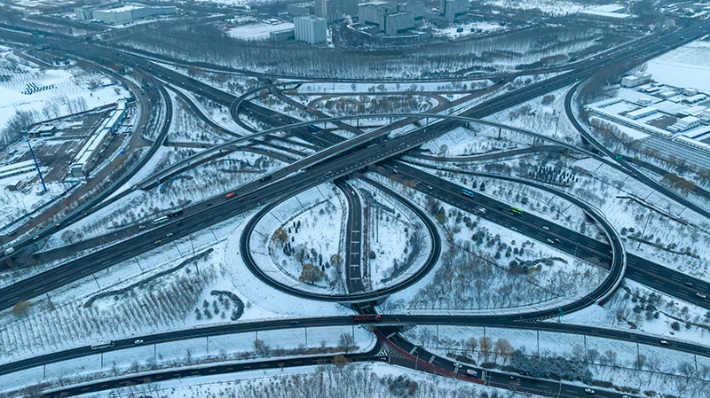 百葛桥初雪 作者:曾贤松 拍摄地点:八达岭高速辅路