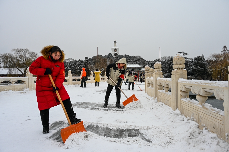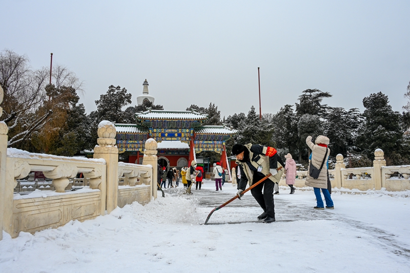 《美景下的扫雪人》组照 作者:王昌和 拍摄地点:北海公园