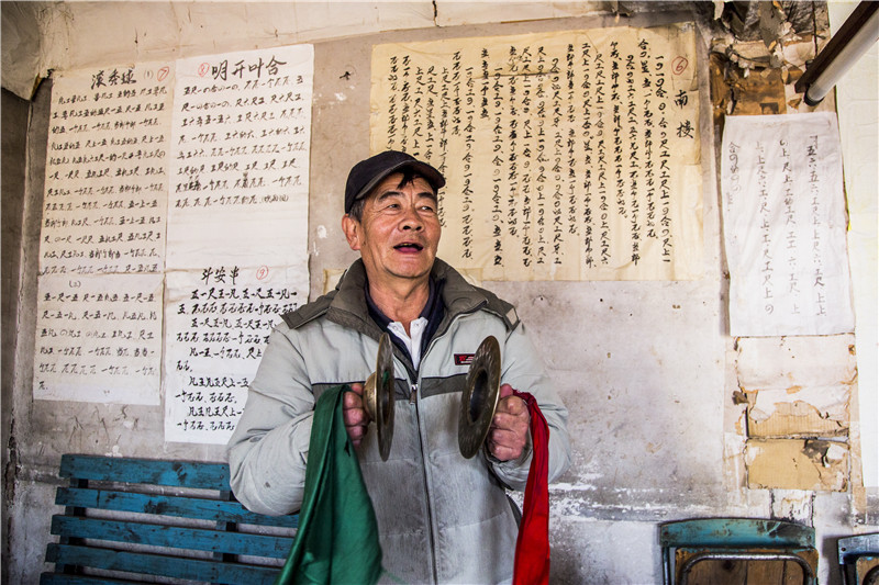 66岁的老者是千军台村为数不多的能熟练演唱工尺谱