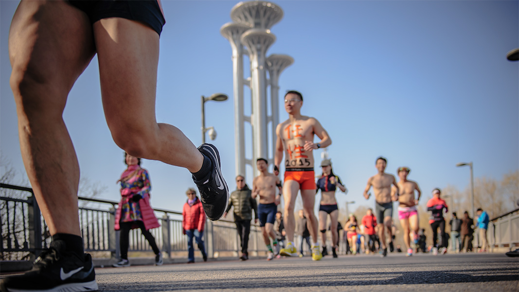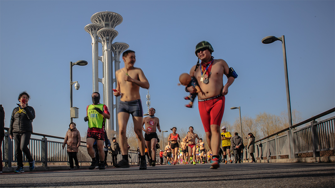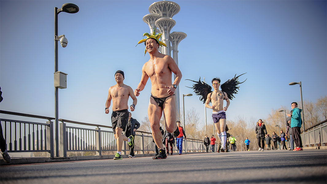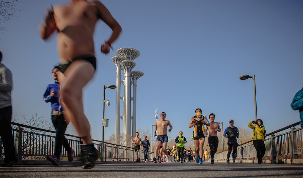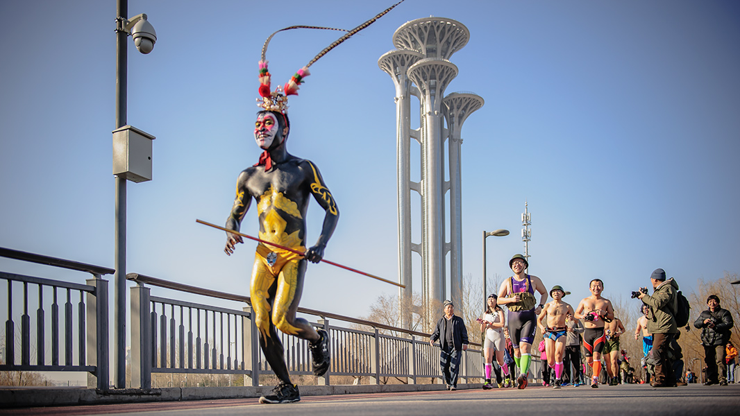 图片说说:第四届光猪跑在奥森为支持申办冬奥会--光猪跑
