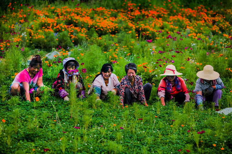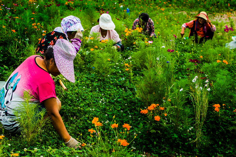 图片说说:APEC会都怀柔雁栖镇经过规划建设,变得更加绿色美丽。这里面有着花农美容师们的辛勤汗水。