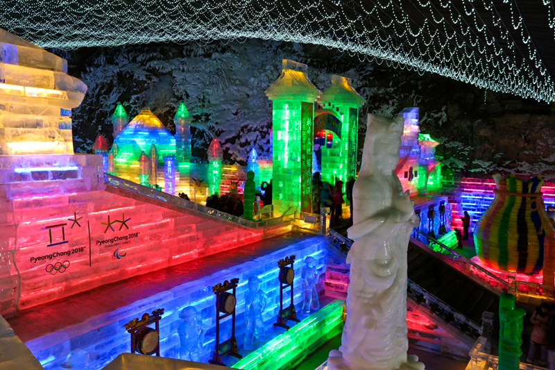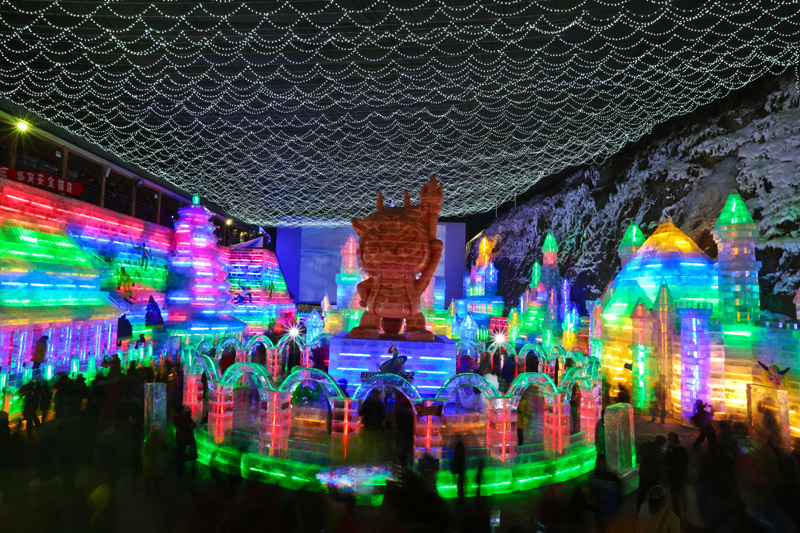 龙庆冰灯助力申冬奥(组照) 作者:池淳 拍摄地点:北京市延庆区龙庆峡