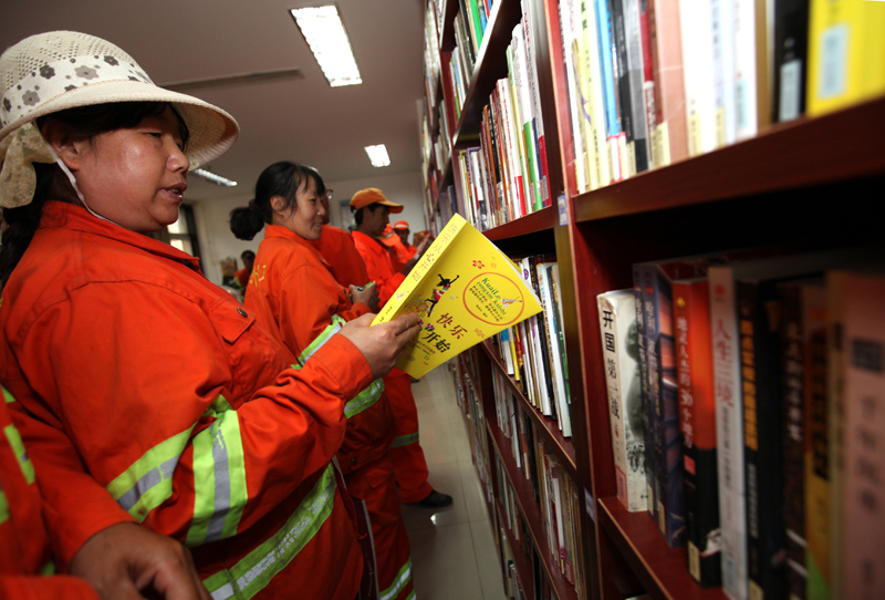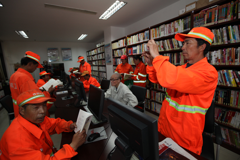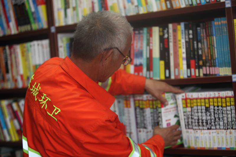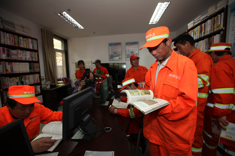 环卫工人走进社区图书馆 作者:樊功厚 拍摄地点:管村社区图书馆