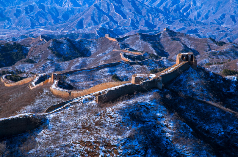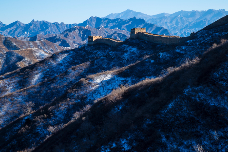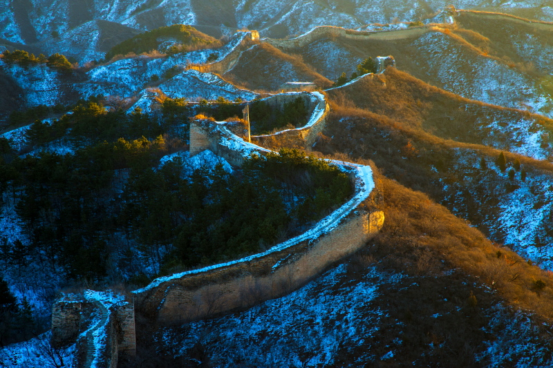 雪色黄昏 组图4张 作者:何嵘 拍摄地点:2016.11.26密云古北口民俗村蟠龙山段长城
